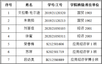 根据湖南大学相关评定文件要求,依照经贸奖学金评定细则,通过个人申请和学院评审委员会集中评审,拟评定以下人选获得2022年度经贸奖学金“经贸励志助学金”。