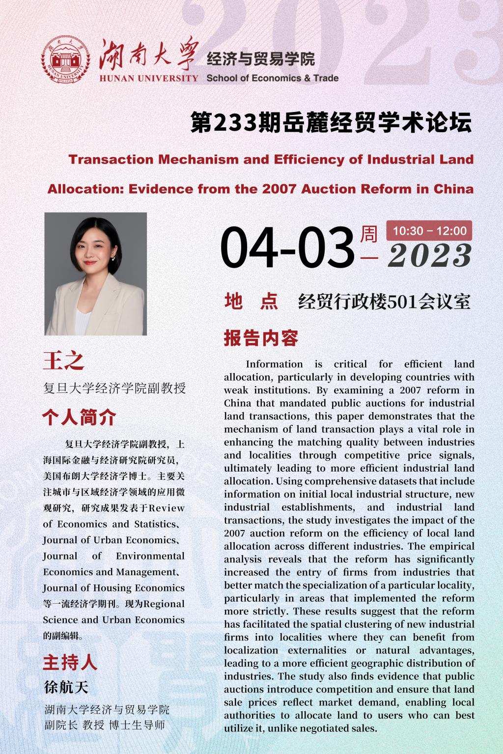 王之:Transaction Mechanism and Efficiency of Industrial Land Allocation: Evidence from the 2007 Auction Reform in China