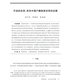 范子杰副教授、彭思仪博士研究生、张亚斌教授合作撰写的学术论文《开放促改革:来自中国户籍制度改革的证据》在《世界经济》2024年第12期刊出。《世界经济》期刊是由中国世界经济学会与中国社会科学院世界经济与政治研究所主办的重要学术期刊。