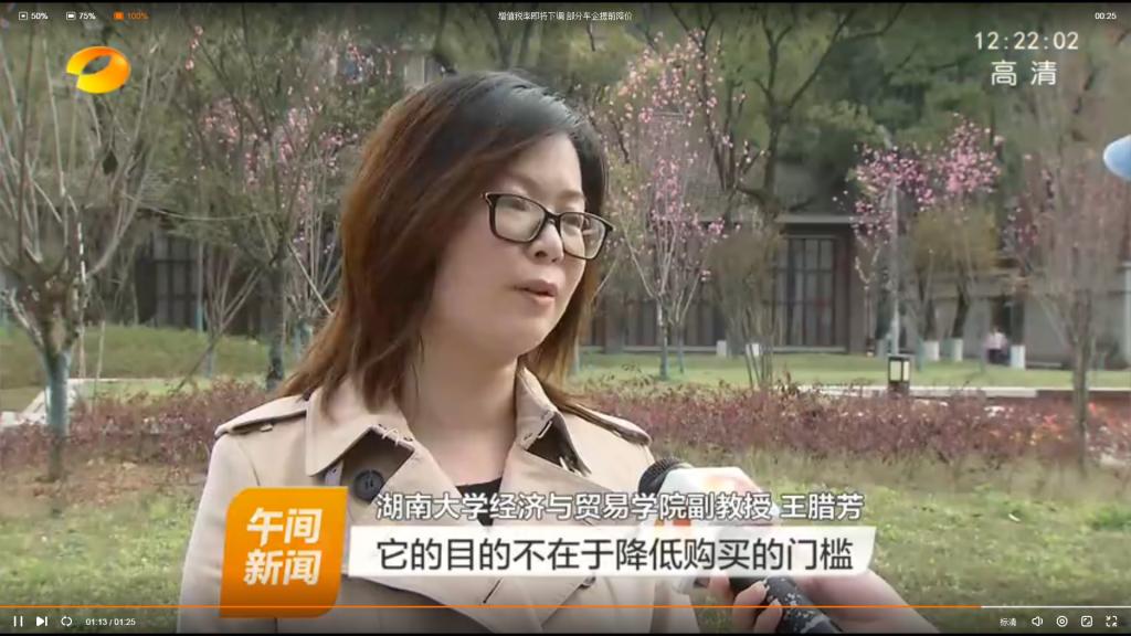 近日,就“两会”政府工作报告中提出的增值税率下调,将对本土车企和进口汽车的定价带来什么影响的话题,人体艺术 国际贸易系副教授王腊芳博士接受了湖南卫视的采访: