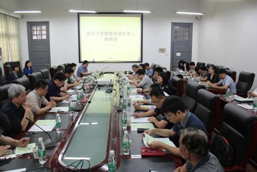 、建筑学院、工商管理学院、新闻传播与影视艺术学院、岳麓书院、中国语言文学学院等11个学院30余名项目负责人参会。侯俊军处长主持会议,省社科院智库办主任周湘智受邀作题为“智库报告撰写的道与术”专题讲座。