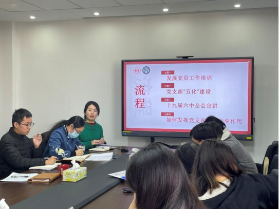 党委副书记李曼老师聚焦党支部战斗堡垒作用的发挥开展培训。希望各个支部要做到完成规定动作不走样,自选动作出特色。鼓励各位党支书努力提升自身素质和党务工作水平,将工作做好做精。并带动和激发每个党员的示范引领作用,使每一个党员都成为一面旗帜,能发挥思想上的引领作用、学习上的榜样作用、生活中的表率作用和关键时的先锋作用。