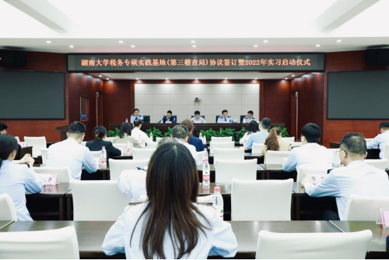 启动仪式上,双方签订湖南大学税务专硕实践基地(长沙市税务局第三稽查局)协议书。