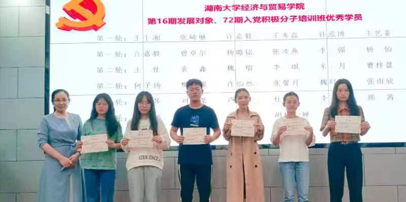 分党校第16期发展对象和第72期入党积极分子培训班结业仪式在行政楼201会议室举行,学院党委书记、分党校校长祝树金,学院党委副书记、分党校副校长李曼参加结业仪式并开展专题党课。研究生辅导员田丽靖、学生党建事务中心骨干、2019级新发展党员、以及学员代表参加仪式,学工办主任、分党校办公室主任蔡婕萍主持。