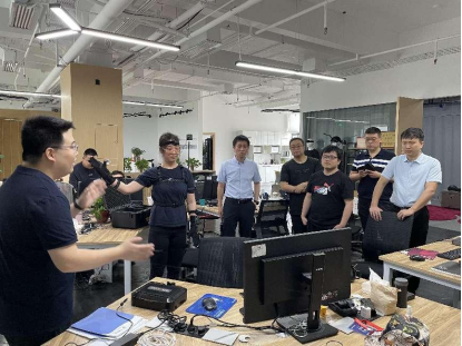 随后,调研组参观了公司的VR(虚拟现实)、AR(增强现实)、MR(混合现实)技术展示和动作捕捉技术展示,并体验了Alice大空间VR虚拟现实多人交互系统。