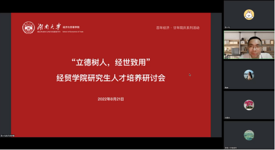 在线上召开“立德树人,经世致用——研究生人才培养研讨会”。湖南大学研究生院院长张亚斌教授参加会议并发言。学院全体班子成员、全体导师、教务和辅导员老师参加会议,会议由学院副院长肖皓主持。