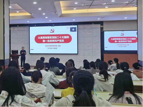 党委召开“认真贯彻落实党的二十大精神做一名优秀共产党员”专题党课,学院党委副书记李曼主讲,第17期发展对象及第73期入党积极分子参加学习。