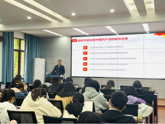 党委召开“学习贯彻党的二十大精神,推动数字经济高质量发展”专题党课,学院党委委员、副院长曹二保老师主讲,第73期入党积极分子培训班参加党课学习。