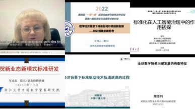 商学与管理学院教授姜红,对外经济贸易大学中国WTO研究院院长助理周念利,中国计量大学经济管理学院教授郑素丽做出报告。各位学者结合了数字经济背景、人工智能治理、外贸新业态新模式、全球数字贸易治理等不同内容,对新时代的标准化发展进行了探讨。