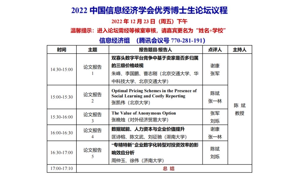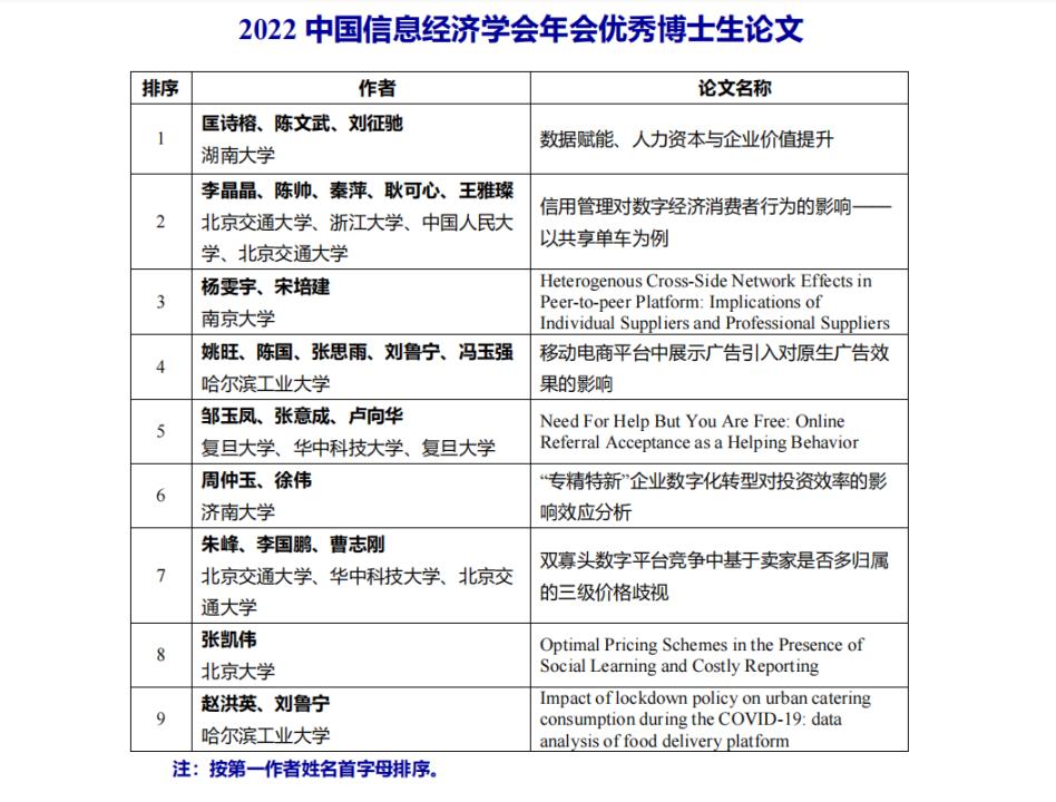 本届年会邀请了来自北京大学、浙江大学及IBM公司等国内知名学者、专家线上联动,对其研究领域及所在行业进行了解读与分享,共同探讨数字经济发展的最新动态及发展格局。会议面向全国征集参会论文,来自北京大学、清华大学、复旦大学等一流高校的多项研究踊跃投稿。经过组委会对众多论文的匿名评审与竞争性排序,筛选出4篇信息经济组优秀论文与5篇信息管理组优秀论文。为与会嘉宾呈现了一场大师云集、内容丰富的学术盛宴。