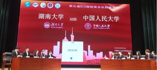本届大赛由全国国际商务专业学位研究生教育指导委员会指导,中国国际贸易促进委员会法律事务部、国际商事争端预防与解决组织秘书处和中国政法大学联合主办,中国政法大学商学院承办,是国际商务教指委三大全国赛事之一。来自55所高校培养单位的88支代表队参加比赛,经过专家三轮评审,共16支队伍入围复赛,复赛围绕跨国企业并购、国际项目投融资谈判等案例模拟国际商务谈判的实战场景,最终决出6支队伍进入决赛。在决赛中,湖南大学代表队(甲方)和中国人民大学代表队(乙方)同台谈判,最终湖南大学代表队荣获二等奖。赛后,专家评委从谈判礼仪、言谈举止、专业知识、谈判策略及团队协作等方面为所有队伍的表现进行了客观点评。