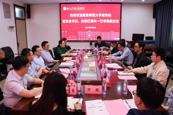 胡友志详细介绍了南京师范大学及商学院的发展情况和此次调研的主要目的,希望今后能够加强和经贸学院的交流与研讨,在党建引领、学科建设、人才培养和国际化交流开展合作。