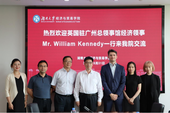 5月31日,英国驻广州总领事馆经济领事柯望舒一行来访,学院院长侯俊军,副院长肖皓,国际合作与交流处副处长周健、处办主任刘蕾参加座谈。