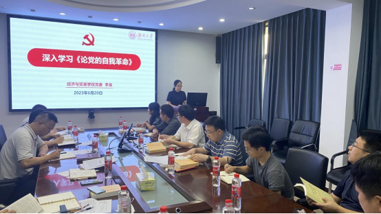 会议就《论党的自我革命》《习近平著作选读》(第二卷)内容进行领学。会议认为,自我革命重要论述是习近平新时代中国特色社会主义思想的重要组成部分,要准确把握党的自我革命精神的理论意涵,必须筑牢思想道德防线,加强党性修养,弘扬实事求是的工作作风,健全监督机制,围绕工作职责保持廉洁奉公,以改革创新精神加强和完善自己。会议强调,党的十八大以来形成了以新发展理念为主要内容的新时代中国特色社会主义经济思想,是党和国家十分宝贵的精神财富,必须长期坚持、不断丰富发展。我们要主动开展专业研究,研判世界发展大势,为推动学科建设和学院各项事业发展发挥应有的作用。