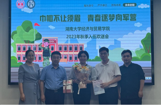 党委书记祝树金向木凯热木同学参军入伍表示热烈祝贺,对其积极投身国防事业和军队现代化建设的行为给予充分肯定,并希望她严格遵守军规铁纪,努力学习军事技能,苦练本领,争做有灵魂、有本事、有血性、有品德的“四有”新时代革命军人;继承好、发扬好湖南大学“实事求是,敢为人先”的精神,以拼搏奋进书写人生精彩华章。