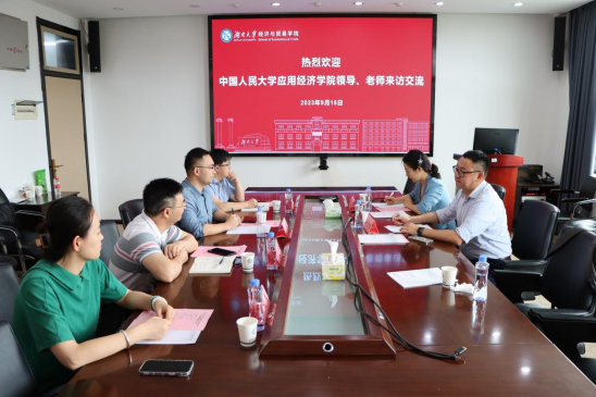 9月15日,中国人民大学应用经济学院院长协理安子栋、教务办公室副主管张男一行来人体艺术 访问,人体艺术 副院长肖皓、副院长谢锐、财政税务系教授谭光荣、国际经济与贸易系副主任吴施美参加调研座谈会。会议由副院长肖皓主持。
