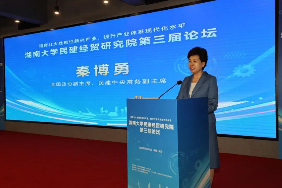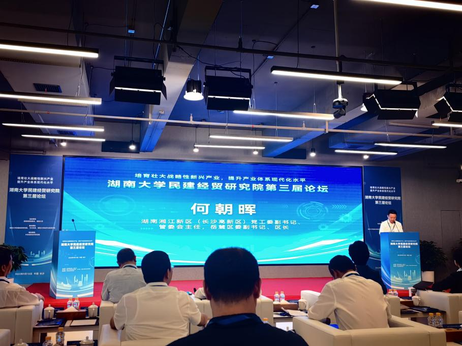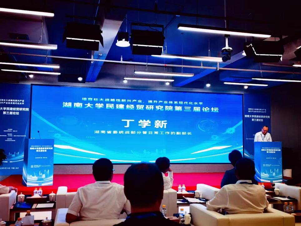 、湖南大学民建经贸研究院、 万兴科技承办,中非经贸合作研究院协办的湖南大学民建经贸研究院第三届论坛在长沙举行。论坛主题为“培育壮大战略性新兴产业,提升产业体系现代化水平”。