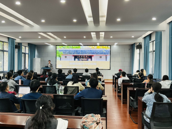 于行政楼201会议室举办2023年朋辈互助员培训学习会,会议由学院心理兼干胡煊赫主讲,学院本研各班级朋辈互助员共60余人、学生会及研究生会干部代表共10余人参与会议。