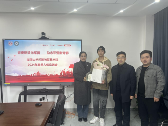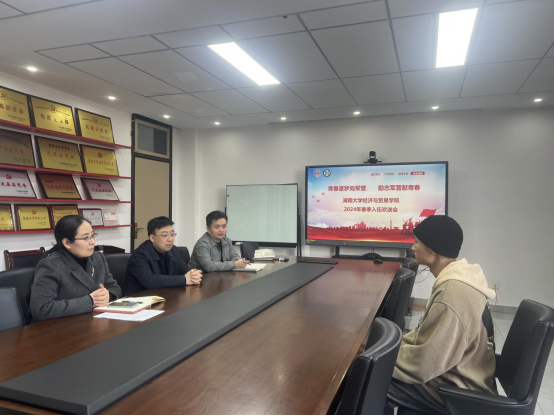 党委副书记李曼、辅导员艾克帕尔勉励谢宽要敢于担当,勇挑重任,为强军兴军伟业作出应有贡献;珍惜军营时光,发挥自己大学生士兵优势,丰富自己的人生履历,积累宝贵的人生经验,以“湖大学子”的身份,面对新担当、新使命,向新征程出发,在未来的日子里努力成为一名优秀的人民子弟兵,学院老师们也会持续关注,期盼从军营传来分享与喜报。