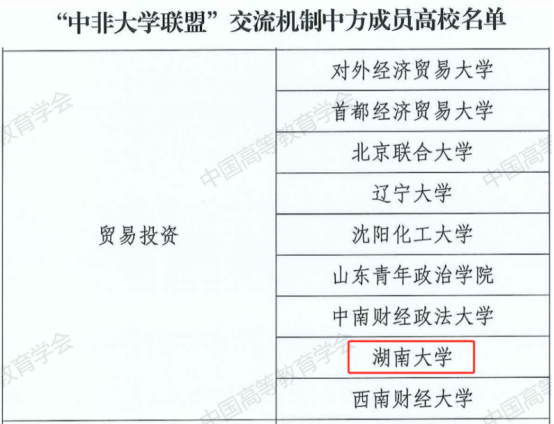 近日,湖南大学同时入选“中非高校百校合作计划”中方成员高校和“中非大学联盟”交流机制中方成员高校。