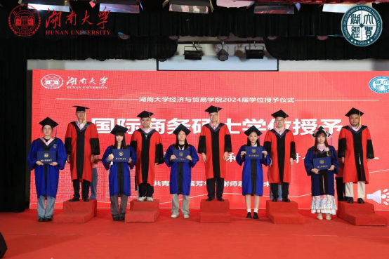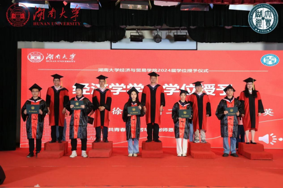 2024届毕业典礼暨学位授予仪式在财院校区小礼堂隆重举行。湖南大学党委常委、校长助理许和连,学院全体领导班子成员,教师代表和全体2024届毕业生参加典礼,党委副书记李曼主持。