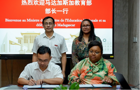 此次框架性协议的签署,由湖南大学中非文化交流中心执行主任、中非经贸合作研究院执行秘书长肖皓与马达加斯加教育部代表共同完成,马达加斯加教育部长SAHONDRARIMALALA Marie Michelle与湖南大学副校长姜潮共同见证了这一时刻。