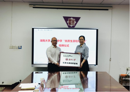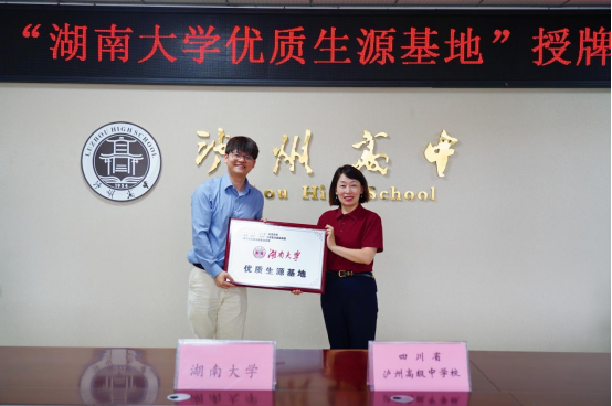 教师代表湖南大学四川招生组前往四川自贡市蜀光中学、泸州市高级中学校开展招生工作交流会,并授牌湖南大学优质生源基地。
