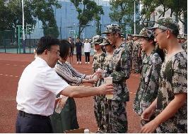 学院院长祝树金、党委书记邓利华、党委副书记李曼、副院长肖皓、副院长谢锐、新生班主任老师及学工老师来到军训场地慰问2024级新生、军训教官以及新生辅导员助理,并勉励参训同学要通过军训强健体魄,培养良好习惯,坚定理想信念、磨砺坚强意志、涵养高尚品格,团结一致,坚韧不拔,为日后的大学生活奠定扎实基础,扎实“扣好人生第一粒扣子”。