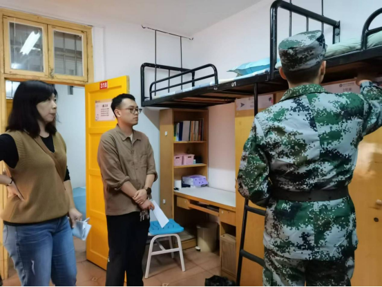 军训期间同步开展内务评比活动,辅导员、班主任、副指导员组成评审团,前往宿舍进行内务检查。告诫同学们内务整理更看重平时,内务整理心绪,磨炼心性,更重要的是培塑严谨认真的作风。