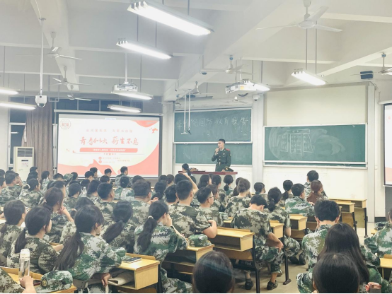 学院组织辅导员艾克帕尔·吐地老师、2023级本科生迪力木拉提·艾买提江同学开展国防专题教育报告会,结合自身参军入伍的经历进行分享,鼓励同学们保持军训期间的拼劲与热情,认真学好专业知识,未来在祖国有需要时贡献自己的青春力量。