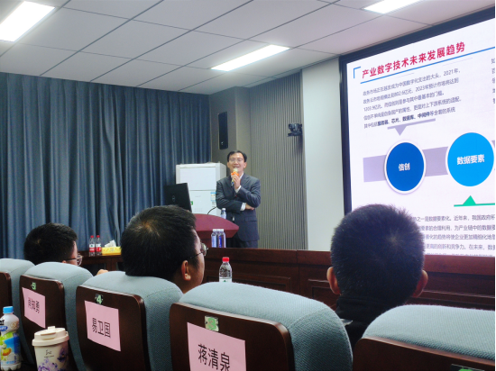 讲座中,廖登校友分享了打造“众陶联”“众车联”等一批“众字辈”特色产业链平台的经历与成果,特别是“众陶联”,作为国家八部委第一批供应链创新试点企业和示范企业,被选为党的十九大大型政论片《将改革进行到底》中唯一供给侧改革典型案例。廖博士强调在数字化转型的过程中,“转型”比“数字化”更为关键。他详细解释了产业链数字化的来源、产业互联网的定义等,并指出其核心在于“创造价值”。在讨论数据要素方面,他强调了数据要素作为新生产力和数据要素入表的重要意义,同时指出了目前估值数据要素的一些困境和问题。他认为,依托大模型可以充分释放数据要素价值,形成地方财政增量。