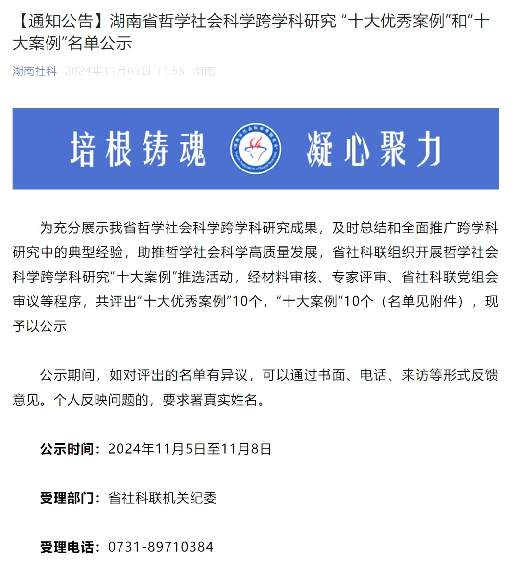 为充分展示我省哲学社会科学跨学科研究成果,及时总结和全面推广跨学科研究中的典型经验,助推哲学社会科学高质量发展,省社科联组织开展哲学社会科学跨学科研究“十大案例”推选活动,经材料审核、专家评审、省社科联党组会审议等程序,共评出“十大优秀案例”10个,“十大案例”10个。