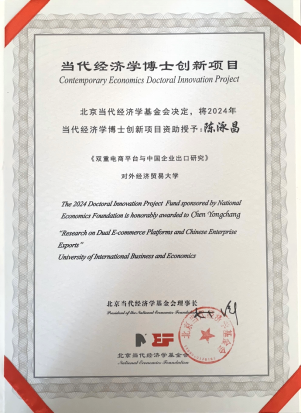 教师陈泳昌撰写的博士学位论文《双重电商平台与中国企业出口研究》在全国百余篇博士论文中脱颖而出,荣获资助。该项目经过全国高校提名申报、匿名初审、匿名复审答辩等多个评审环节,最终选拔出10位优秀青年学者,其余获奖学者分别毕业于清华大学、北京大学、中国人民大学、上海财经大学等国内著名高校。
