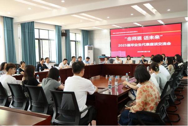 召开“念师恩 话未来”2025届毕业生座谈会。院长祝树金、学院党政班子、各系主任、系支部书记、青年教师代表、全体辅导员、本研教务秘书和本研毕业生代表参加会议。会议由院党委副书记李曼主持。
