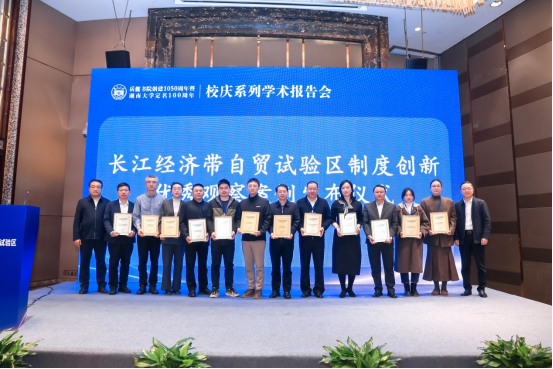 会议期间发布“长江经济带自贸试验区制度创新优秀观察案例”,谭浩然和许和连为优秀观察案例片区代表颁发证书。