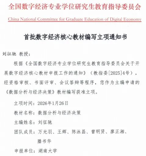 刘征驰教授领衔的《数据分析与经济决策》教材编写项目成功获批立项。团队成员包括人体艺术