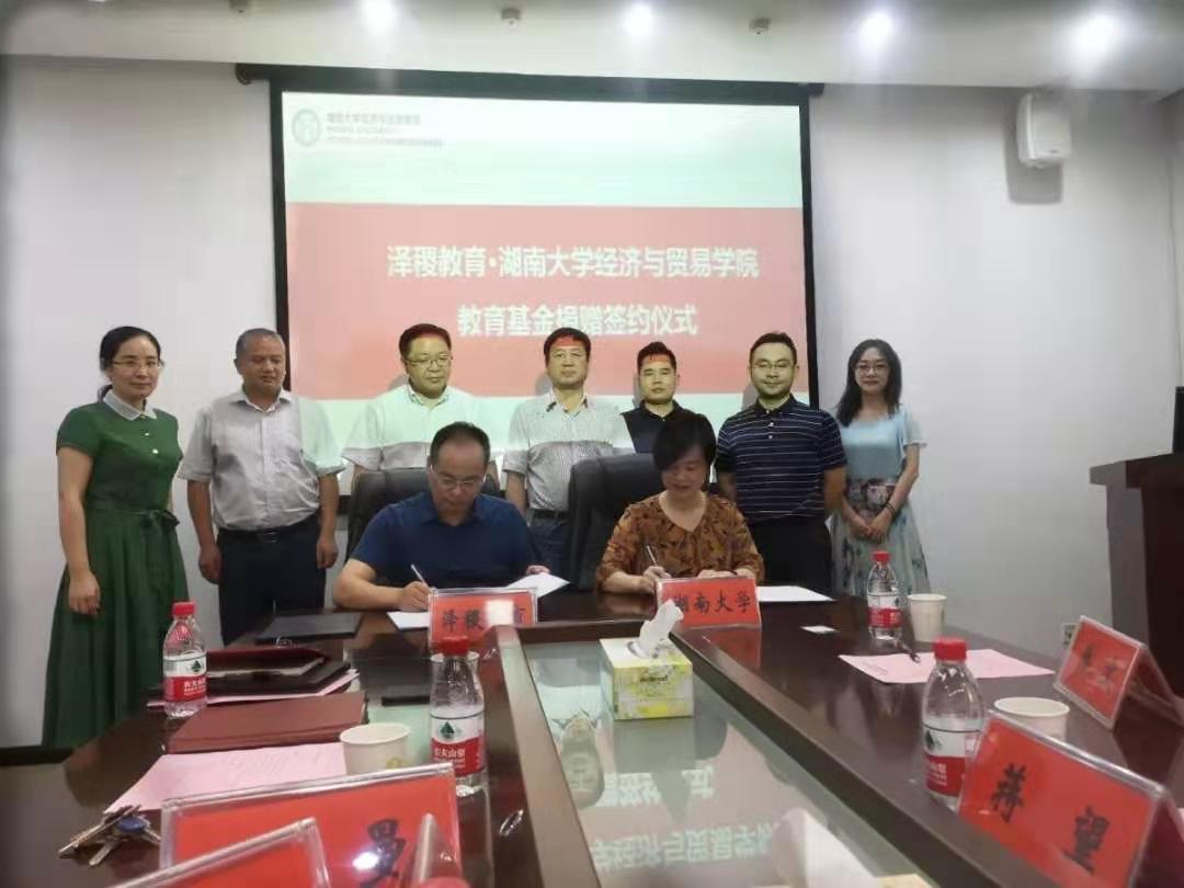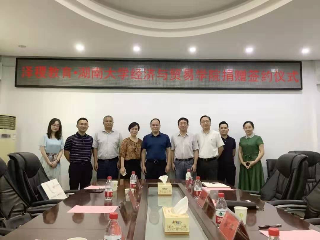 党委书记郭平、院长许和连、党委副书记谢树玉、副院长肖皓、学工办和校友办公室主任李曼,泽稷教育培训有限公司长沙地区市场总监蒋雯等参加了捐赠仪式。