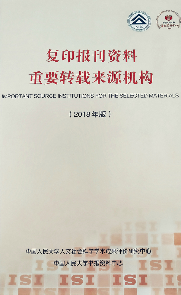 2019年3月26日,中国人民大学人文社会科学学术成果评价研究中心和中国人民大学书报资料中心联合研制的《复印报刊资料重要转载来源机构(2018年版)》正式发布。
