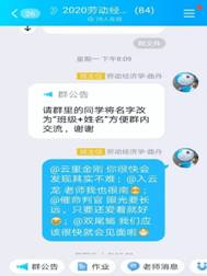 湖南大学经贸院的老师共同抗“疫”,开展线上课堂,不忘深入开展教育教学改革,将课程思政落到实处。曲丹老师教学劳动经济学以来坚持以思政教育为根本,除了要求同学们除了掌握基本的理论知识外,更是引导学生学会发现问题以及分析问题和解决问题的方法,培养和提升科学的经济学思维,更深层次地解读国家相关政策。