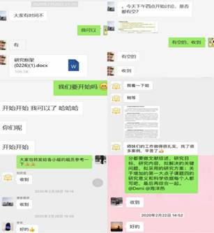 在此次“超长假期”中,团队成员在曹二保老师的带领下,进行了常态化的小组研讨(2-3人/组),团队成员每日相互督促、勉励,均能够在假期中静心科研,因此在党员交流沟通环节,各位党员结合自身实际情况,分别就居家防控期间学术、学业、生活的内容进行了交流沟通。研三党员刘岚茜同志提出寒假时间面临着论文撰写与毕业的压力,通过与曹老师语音通话等方式沟通论文进展,目前论文已经成功提交,问题已经得到了解决。陈光智同志提出延迟开学可能会影响出国深造手续的办理,在时间协调上较为困难,但是作为一名共产党员,会严格遵守学校的规定,在家做好防护,不提前返校,静心等待开学通知。研二党员张慧媛同志提出在家学习过程中通过语音通话、视频通话及时与同门沟通可以解决项目书写信息不对称的问题,使用曹老师推荐的Sci-hub网站解决了下载外文文献不流畅的问题,目前可以高效的进行项目书写。研一党员张正华同志提出居家学习期间较为充实,一方面使用Forest App帮助自己提高网课学习效率;另一方面与同门之间交流沟通学术进展督促自己潜心科研。