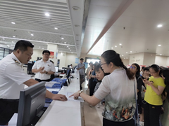 随后,我们来到星沙海关办事大厅参观。来到这里我们发现,办事大厅的工作人员并不多,来办理报关业务的人更是寥寥无几。工作人员向我们解释道,目前,出口企业的报关流程基本可以实现线上操作,十分方便,不需要每笔业务都到办事大厅进行全套报关流程。报关过程从线下到线上的转移,极大提高了出口报关工作的效率,节约了资源,对外贸企业从事进出口活动十分有利。