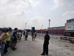 随后,我们又继续参观了港口码头、检货中心、物流仓库等海关工作区域。师生们乘车驶过长沙港集装箱码头,参观了数以万计摆放有序的集装箱以及各种作业车辆,还有正在装卸货物的“湘伟号”轮船。长沙地处内陆,货物一般不直接通过航运运抵国外,而是通过驳船运往上海等沿海码头再运往目的地,以此节约运输成本。这一系列的作业便是在这里完成的。