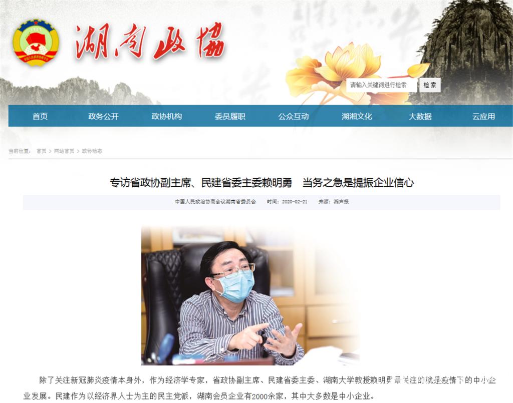 金融与统计学院教授、湖南省首批智库领军人才杨胜刚在党建网、学习强国、湖南日报发表《对当前支持我国民营企业有序恢复生产的政策建言》《确保疫情期农村劳动力顺利返岗复工的政策建议》《综合施策,稳住湖南外贸外资资本盘》等多篇文章,为企业复工复产、国民经济恢复、后疫情阶段经济社会可能面对问题及对策做出专业分析与建议。