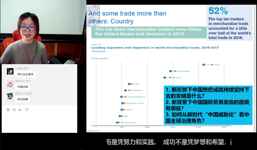 《国际经济学》课程的学习,对不少同学来说都是一个不小的挑战,但王腊芳老师新颖的授课方式引起了同学们的兴趣,B站直播间观看人数连续几次突破1000人就可见一斑。