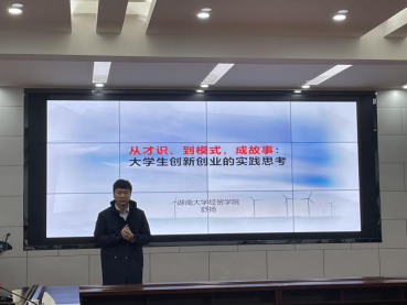 举办第七期青年教师工作坊。此次工作坊围绕大学生创新创业指导,邀请湖南大学创新创业中心主任、教务处副处长肖靖,工训中心副教授吴占涛,学院李巍副教授和舒扬副教授分别与青年教师们进行了经验交流和分享。会议由经贸院党委副书记、学院创新创业中心主任李曼主持。学院全体班子成员,青年教师30余人参加了会议。