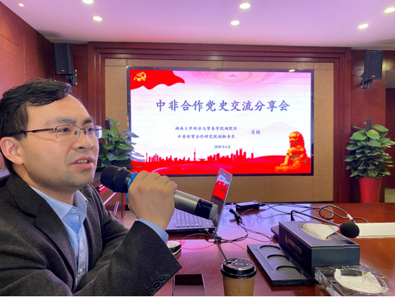 参观结束后,湖南大学经贸学院副院长、中非经贸合作研究院执行秘书长肖皓教授以中非合作党史为主题进行微党课教学,结合丰富翔实的历史文献和历史图片,生动、真实再现中国与非洲建立合作关系的历史进程,全面展示中非关系的坚不可摧。