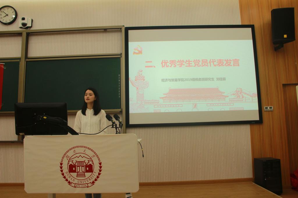 大会主要有四项议程。一是学院党委书记祝树金老师为毕业生党员上党课;二是新发展党员入党宣誓和毕业生党员重温入党誓词;三是优秀党员代表刘佳丽发言;四是硕士研究生辅导员曾婧老师进行党组织关系转接培训。