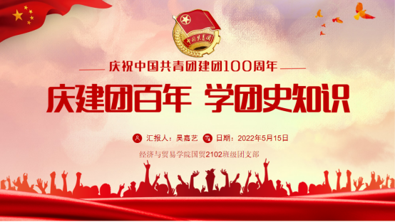 在各班级团日活动中,同学们通过观看纪录片、讲述革命先辈的红色故事,并就如何担负起新时代新青年的责任等问题展开了深入思考与交流讨论,并积极踊跃地讲述自己了解到的中国共产党的百年青年运动史的发展历程,坚定了大家在新时代实现个人梦想和中国梦的信心,获得了宝贵的思想感悟。经济1902班团支部于5月6日以腾讯会议的形式开展线上座谈会,同学们在座谈会中踊跃发言,积极分享,表示要努力成为新时代新青年的自觉践行者和积极倡导者。5月16日,经济2103班团支部开展了《中国共产党的百年青年运动史》专题学习会,深入了解了青年运动史的内涵、三个重要历史阶段等内容。有同学产生这样的感悟,一部百年青年运动史,就是一部共青团带领广大青年赤子丹心图报国的奉献史,我们青年学生,要胸中有初心、肩上有使命、脚下有足迹!此次活动使同学们深入了解并学习百年历史与习近平总书记在庆祝建团百年大会上的讲话精神,更加全面地感悟了中国共产党的伟大力量,也加深了同学们之间对青年使命与担当的认识与理解。在今后的生活中,同学们将会积极投身祖国的建设,为实现中华民族伟大复兴而努力奋斗。