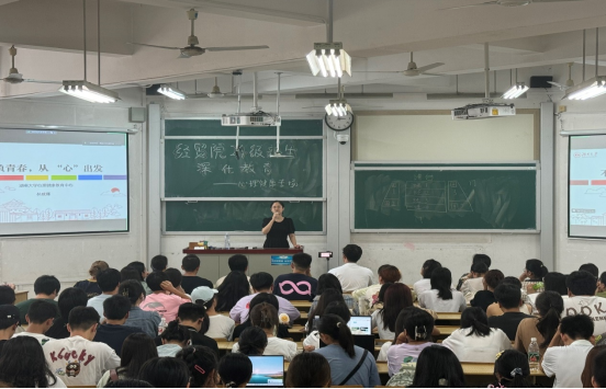 本科2024级于主会场第二教学楼301以及分会场行政楼201举行“不负青春,从‘心’出发”心理健康专题讲座。讲座由湖南大学心理健康教育中心林威娜老师主讲,针对刚进入大学的同学们做了适应性分析与规划,为同学们新启航提供指导建议。本次会议由2024级辅导员蔡婕萍老师,本科2024级全体同学参加。