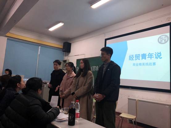 2018年12月18日14:30,一场异彩纷呈的经贸青年说系列活动之商业精英挑战赛在行政楼601室正火热开场。担任本次赛事评委的有人体艺术